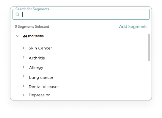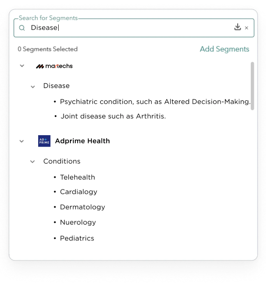 Our Platform offers an extensive library of healthcare curated segments that are readily available for activation. You can instantly choose from thousands of these segments, which have been precisely targeted to reach specific healthcare audiences.